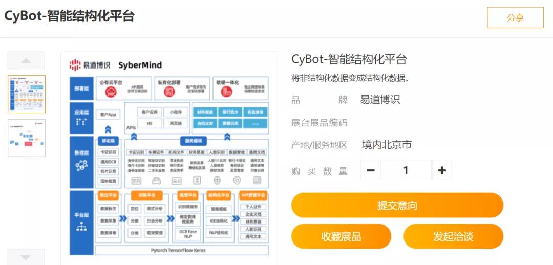 一同展出的,還有曾被億歐網引為行業商業化落地案例的智能結構化平臺。結構化平臺基于深度學習OCR技術,自動從非結構化數字信息中抽取目標數據,并快速生成目標版式的結構化模板,為識別平臺提供結構化方法,讓銀行面對中低程度的復雜樣本,可以搭配已有通用識別引擎,自主解決非結構信息提取的工作,換句話說,就是讓銀行擁有了可自主應對80%OCR識別需求的能力。