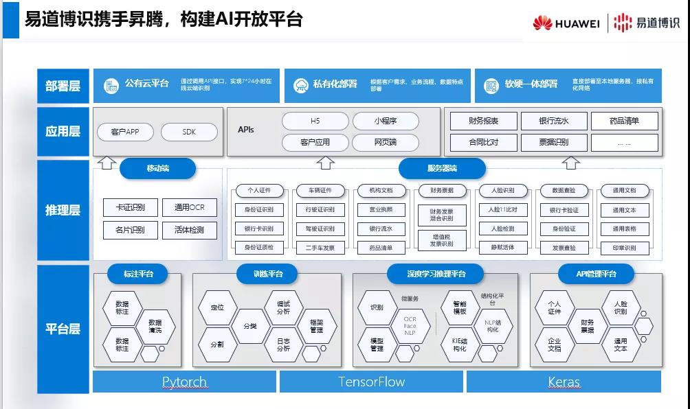 從 2020 年至今,易道博識(shí)與華為建立了密切的合作關(guān)系。憑借易道博識(shí)對(duì)深度學(xué)習(xí)和OCR識(shí)別技術(shù)的持續(xù)研發(fā)和推廣,不僅與華為在產(chǎn)品上達(dá)成兼容,還基于各自領(lǐng)域的技術(shù)與資源優(yōu)勢(shì),在解決方案層上積極探索實(shí)踐,從技術(shù)到產(chǎn)品再到解決方案,做到了技術(shù)共享、業(yè)務(wù)互補(bǔ)、區(qū)域共贏。