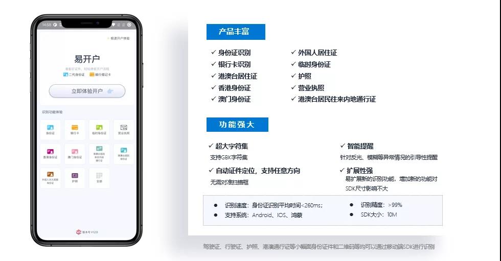 “DOM SDK的市場需求非常大,證券開戶,銀行開戶,投保理賠,汽車金融……等大量應用卡證識別,且移動端需求量極大的業務,都是DOM SDK的應用場景。這些場景對識別速度、識別精度的要求非常高,客戶容忍度低,注重用戶體驗,對產品的魯棒性要求很高。”