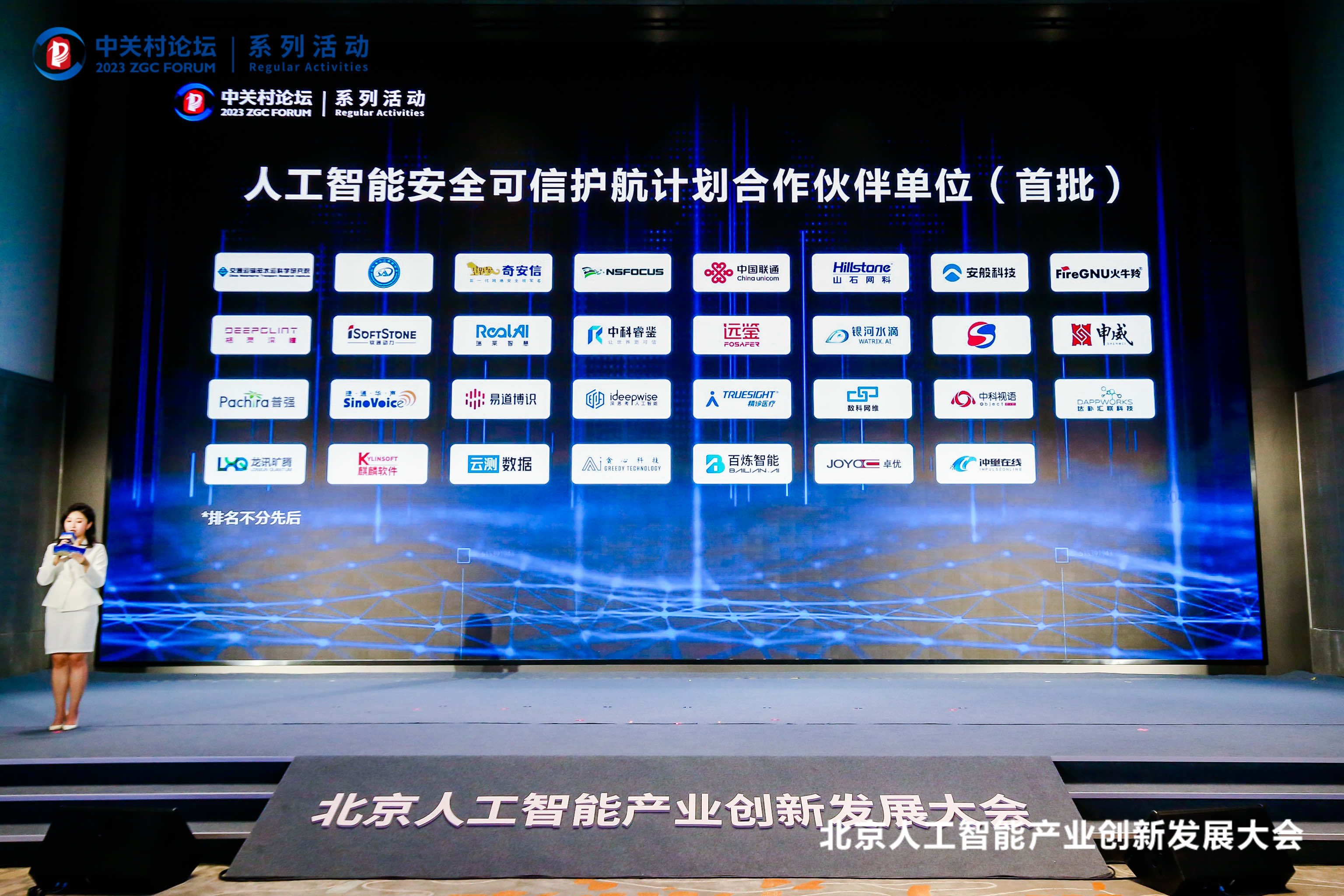 為更好地探索人工智能安全可信管理解決方案,指導行業單位開展人工智能安全可信度自評估,推動行業自律,進一步推動人工智能產業安全可信發展,國家工業信息安全發展研究中心發起“人工智能安全可信護航計劃”,并在本次會上,聯合北京市門頭溝區人民政府、中關村發展集團股份有限公司、華為技術有限公司正式對外發布了“人工智能安全可信護航計劃生態發展中心”,易道博識成為該計劃首批入選合作伙伴單位。