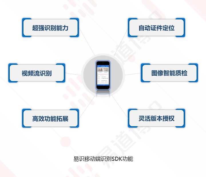 “易識移動端識別SDK”是易道博識打造的業界首款在移動端上實現服務器端綜合性能的深度學習OCR產品,可為用戶移動端產品提供輕量化的身份證識別、銀行卡識別、護照識別等多種識別能力。產品憑借卓越的識別性能、應用靈活性、與App良好的兼容性以及節約開發成本方面的優異表現,為客戶移動應用產品提供便捷、高效、強大的AI能力支撐。“易識”賦能微眾銀行消費金融、平臺金融、財務管理等多業務場景“易識”產品不僅應用于微眾銀行行內財務報銷等管理場景,還直接賦能消費金融、平臺金融、財務管理等業務場景。“微粒貸”是微眾銀行面向微信用戶和手機QQ用戶推出的純線上小額信用循環貸款銀行產品?!耙鬃R”產品為該業務場景提供身份證識別、銀行卡識別等智能識別服務,憑借超高的識別速度與優良的識別精度,助力微眾銀行創造便捷、良好的客戶體驗,向普羅大眾提供便捷、高效的個人消費信貸服務。在微眾銀行汽車金融業務中,“易識”提供從身份證、銀行卡、行駛證、駕駛證、通用發票識別等一系列智能識別服務,協助微眾銀行為客戶提供更智能、更便捷、更高效、更可靠的汽車金融服務。“微業貸”是微眾銀行于2017年推出的全國首個線上無抵押的企業流動資金貸款產品?!耙鬃R”用AI能力助力微業貸打造線上化、秒級審批、隨借隨用等產品特色,推動解決小微企業融資難、融資貴難題,讓小微企業融資“最后一公里”問題得到更好解決。在微眾銀行財富管理業務中,“易識”為微眾銀行?App提供在線開戶、銀行卡綁定等業務中的智能識別服務,為用戶提供專業有溫度的服務體驗以及先進的金融科技與應用。