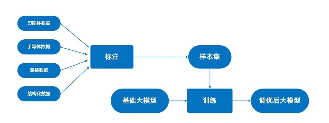 例如,若模型對手寫體識別能力較弱,則在訓練數據中增加手寫樣本的比例。我們使用海量經過專業標注的OCR數據,覆蓋印刷體、手寫體、各類表格及結構化文檔,對基礎大模型進行二次訓練,以增強其在特定任務上的特征學習能力。