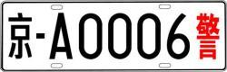 此外還有一些特殊車牌。如警車號(hào)牌,白底黑字(“警”字為紅字)黑框線。漢字與字母之間前點(diǎn)后杠,用于汽車類警車。