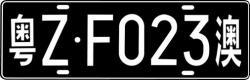 港澳地區(qū)入出內(nèi)地的汽車使用港澳入出境車號(hào)牌,黑底白字白框線,白“港”、“澳”字,白框線。