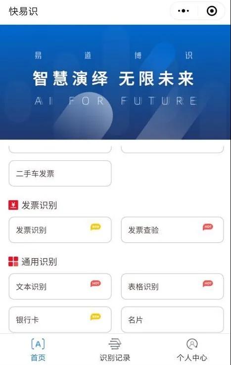 小程序中還內(nèi)置發(fā)票識(shí)別和發(fā)票驗(yàn)真功能,歡迎試用。