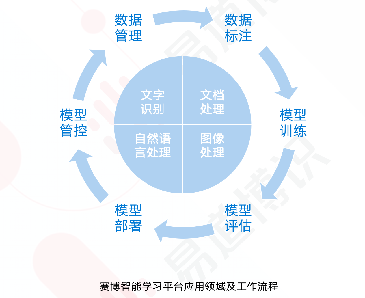“賽博智能學習平臺”是易道博識自主研發(fā)的一站式機器學習訓練平臺,提供文字識別、文檔處理、圖像處理、自然語言處理領域數據驅動模型應用高效解決方案。用戶可利用平臺自主完成數據管理、數據標注、模型訓練、模型評估、模型部署、模型管控全流程工作。