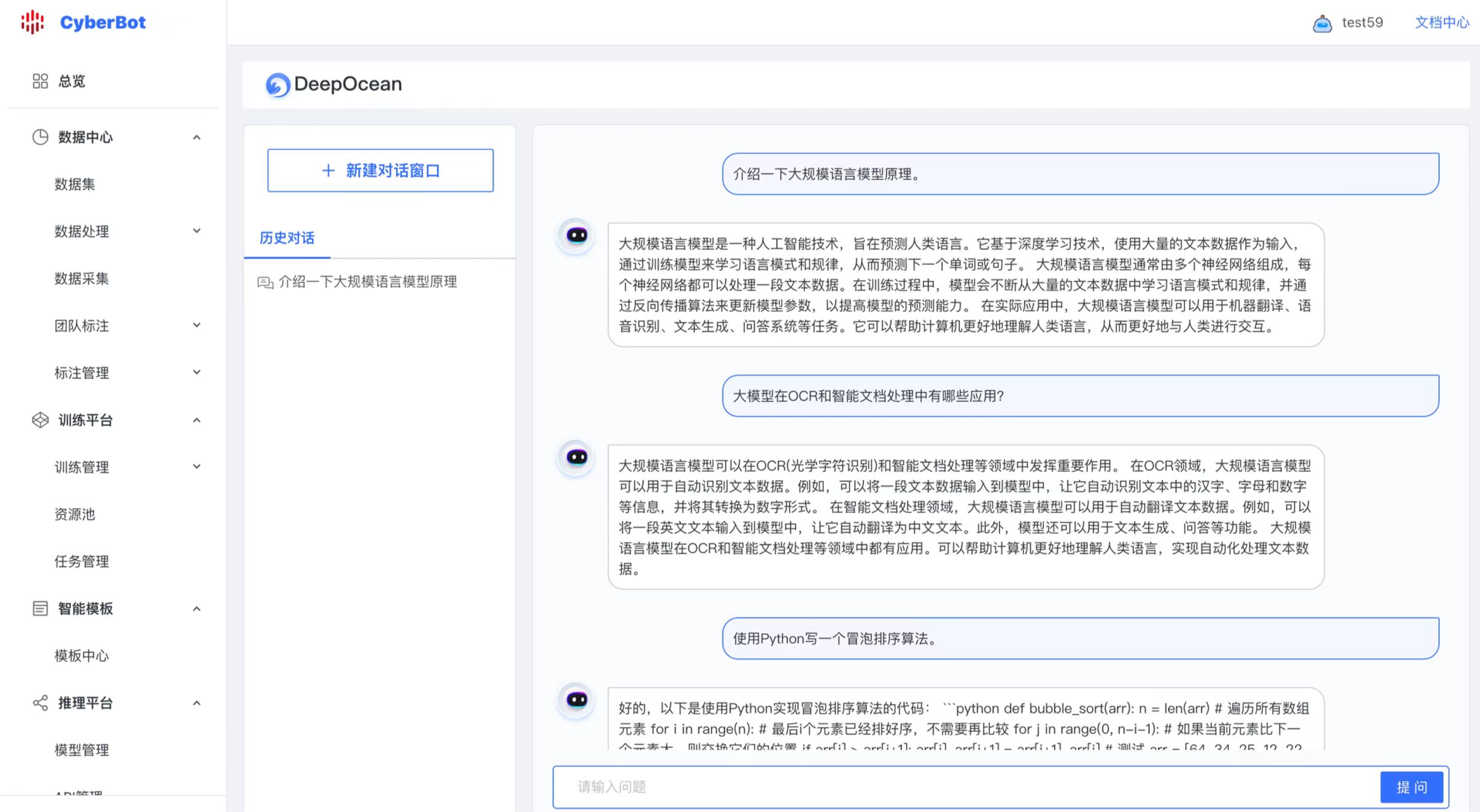 最后,通過賽博智能學習平臺,滄海大語言模型能夠滿足基于DCU服務器的訓練與推理。利用DCU本身對于生成式大語言模型在訓練和推理方面的性能加速優勢,結合賽博平臺本身友好的可視化操作界面,能夠很好地滿足用戶快速模型訓練和場景數據調優的需求;進一步通過模型一鍵部署功能,實現快速場景應用。