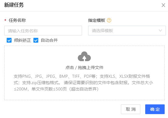 基于強大的OCR和IDP引擎,可兼容PNG、JPG、PDF、Excel等多種文件格式,自動判斷報表類型,智能識別資產負債表、利潤表、現金流量表等財務報表,智能匹配模板科目。支持上傳壓縮包,支持圖片自動去重,支持分頁報表自動合并。