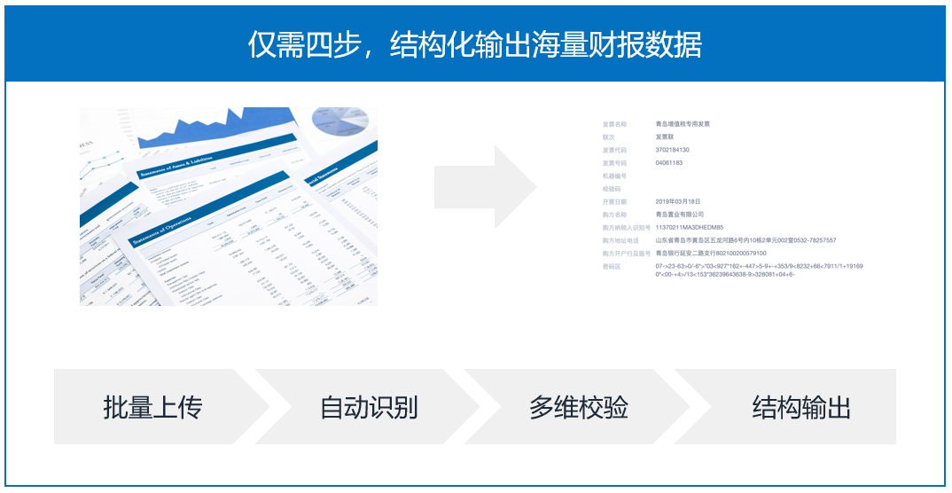 面對以上棘手難題,易道博識智能財報錄入系統應運而生,利用最前沿人工智能技術實現財報數據智能、快速、準確錄入,可自動識別、解析和提取各類財務報表的關鍵數據,有豐富的內置模板庫和自定義模板功能,廣泛應用在銀行信貸、證券投資分析、企業投融資等業務場景。