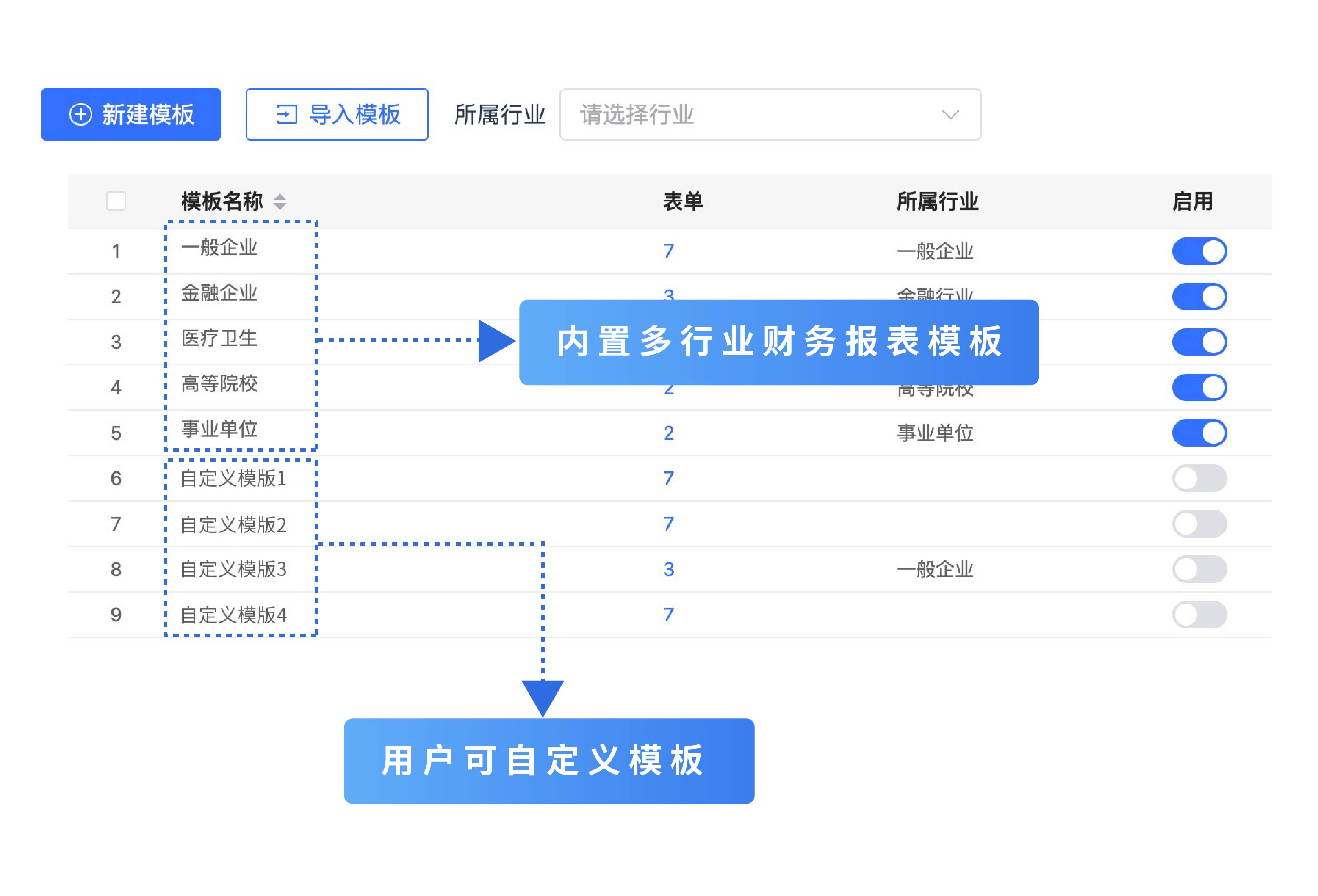 內置覆蓋金融企業、醫療衛生、高等院校等行業通用模板,即刻上手。