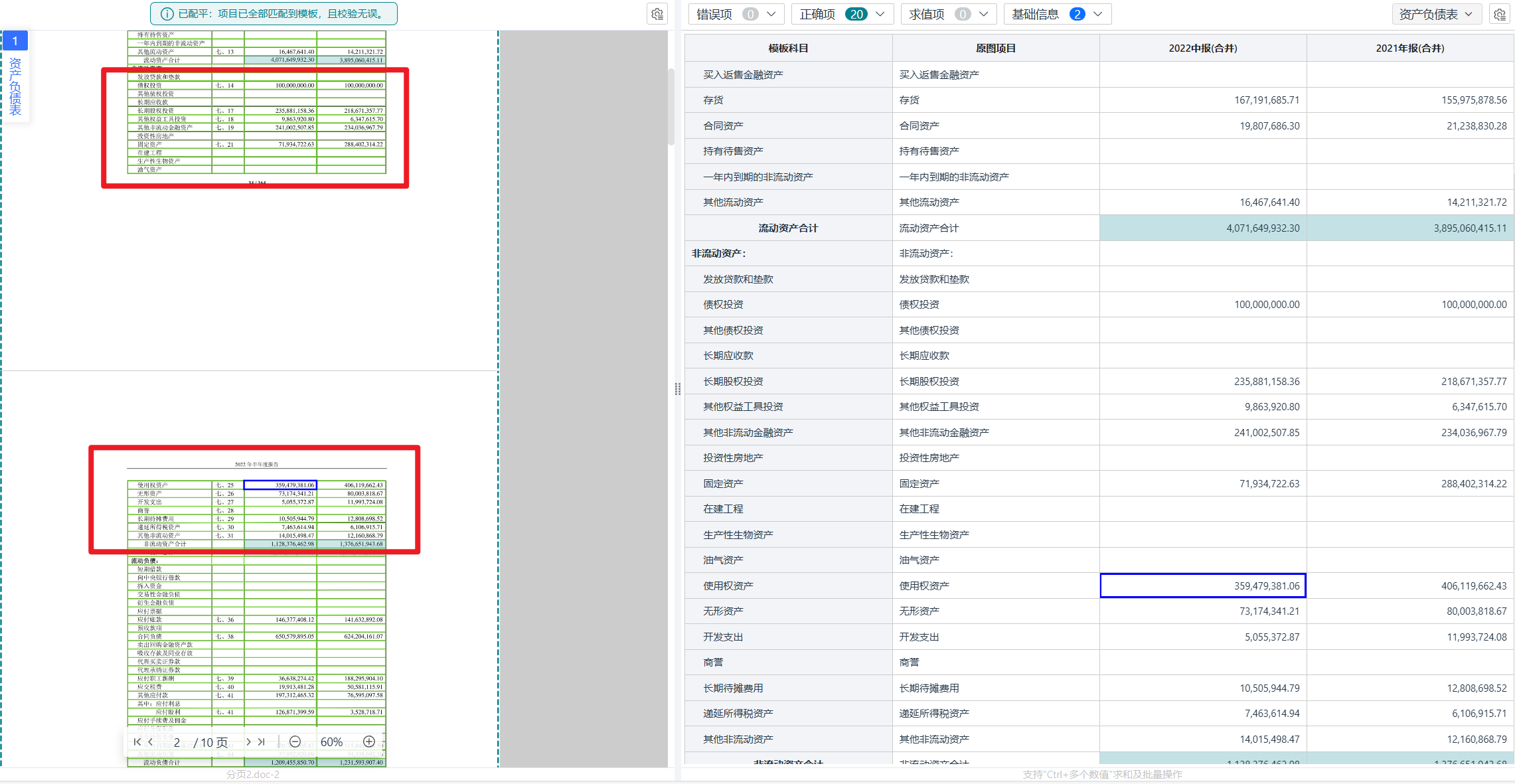 除了高達99.5%的基礎OCR識別準確率外,系統核心優勢在于內置了基于會計勾稽關系的智能校驗規則(如 資產 = 負債 + 所有者權益)。系統能自動進行數據配平與校驗,確保財務數據的準確性和邏輯自洽性,一次配平率超過95%。
