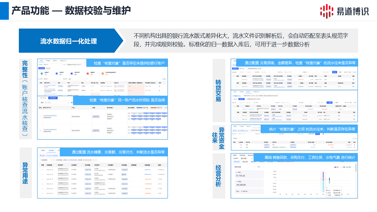 以易道博識智能流水核查系統為例,我們可以銀行流水從數據錄入到風險分析的智能錄入分析。